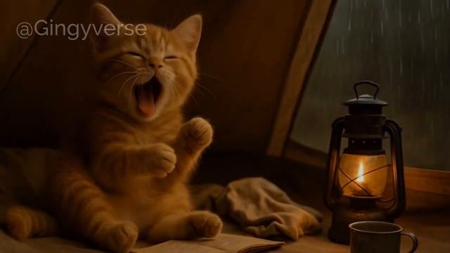 🌧️ Tiny Cat’s Peaceful Rainy Day_ Quiet Moments in the Rain ⛺🍵