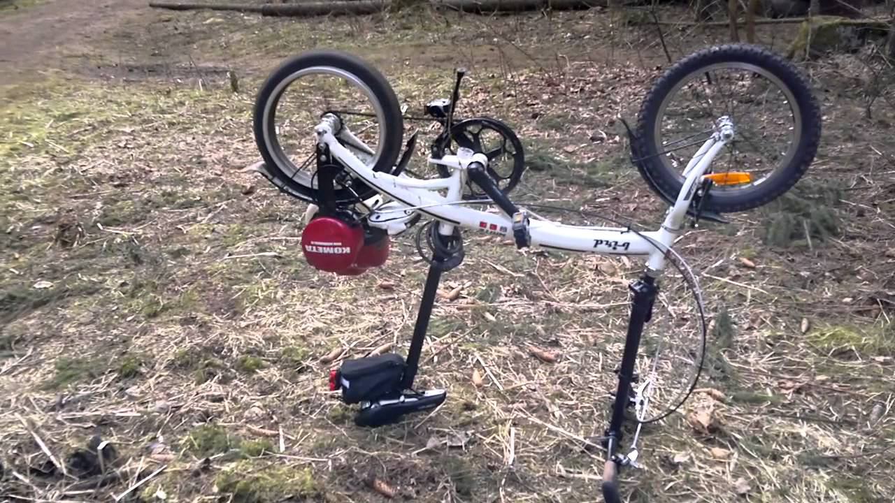 Демонстрация возможностей мотовелосипеда Комета. Работа двигателя в перевёрнутом положении.
