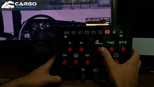 Button Box desenvolvida com: ✔ Painel iluminado; ✔ 11 leds indicativos de estados do caminhão; ✔ 14 botões; ✔ 1 controle de vidro elétrico esquerdo e direito. Compatível com ETS2 e ATS com ETS2 e ATS Disponível em: https://www.cargosimuladores.com.br/buttonbox-orlando