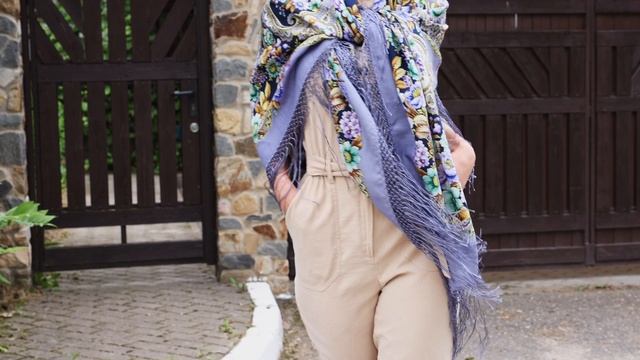Платок из уплотненной шерстяной ткани с шелковой бахромой "Царевна Осень"-15