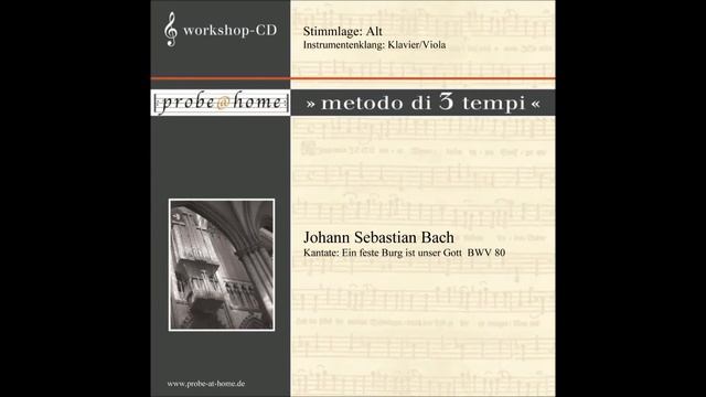 http://probe-at-home.eu/ Übungs-Datei für: Ein feste Burg ist unser Gott, bis Takt 119 Nr. 1 aus der Kantate, Ein feste Burg ist unser Gott BWV 80 von J.S. Bach T1 = Tempo 1 = langsames Tempo Stimme: Alt Klang: Klavier, Klang Alt: Viola Die Chorsätze dieses Werkes, können als Einzel-CD, für jede Stimme erworben werden, bei: http://probe-at-home.eu/