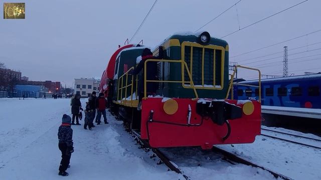 Мемориальный комплекс «Пожарный поезд» с памятником «Героям-огнеборцам». Экспозиция состоит из пожарного поезда (вагон-гараж и вагон-насосная станция), маневрового тепловоза, пожарного автомобиля и скульптуры пожарного со спасённым ребёнком на руках. Пожарная машина на базе автомобиля Зил-130. Тула. ЯНВАРЬ 2022