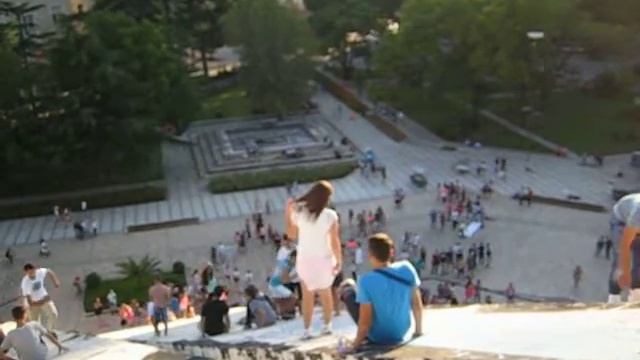 Nies tilgħin mal-ħitan tal-Piramida f'Tirana