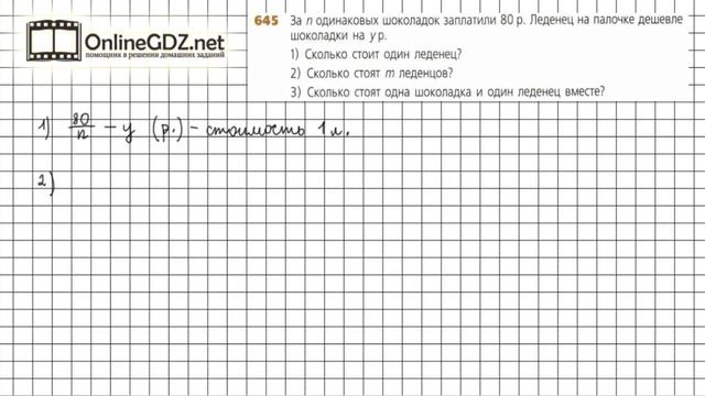 Другие решения смотри тут: https://urokitv.net/ Urokitv.net это школьные учебники и решебники с 1-го по 11-й класс школы. Ждем ваших предложений и пожеланий. Если вам нравится, то что мы делаем расскажите про нас своим друзьям и одноклассникам. Номер 645 – необходимо составить выражения для решения задачи. Задание №645 - ГДЗ по математике 6 класс (Дорофеев Г.В., Шарыгин И.Ф.)