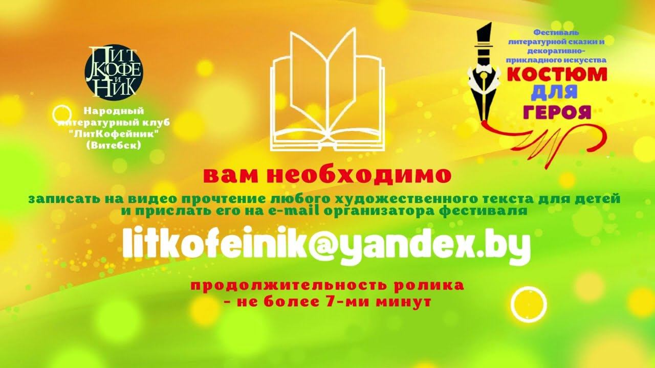 В Год мира и созидания, в год 120-летия Лазаря Лагина, по счастливой случайности родившегося в Витебске, народный литературный клуб "ЛитКофейник", фестиваль литературной сказки и декоративно-прикладного искусства "Костюм для героя", конкурс литературной сказки имени Лазаря Лагина объявляют интернет-акцию #читаемдетям. Дорогие дети, сказку Анны Климович "Тёмная тучка и светлое облачко" читает Анна Климович. Слушайте на здоровье!