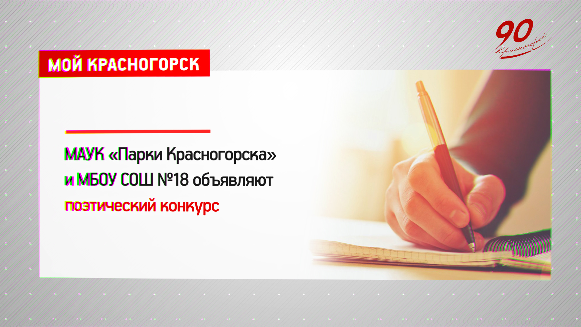Поэтический конкурс к 90-летию Красногорья объявлен МАУК «Парки Красногорска» и МБОУ СОШ №18. Заявить о своей любви к малой Родине в стихотворной форме могут все поэты-любители в возрасте от 7 лет.
