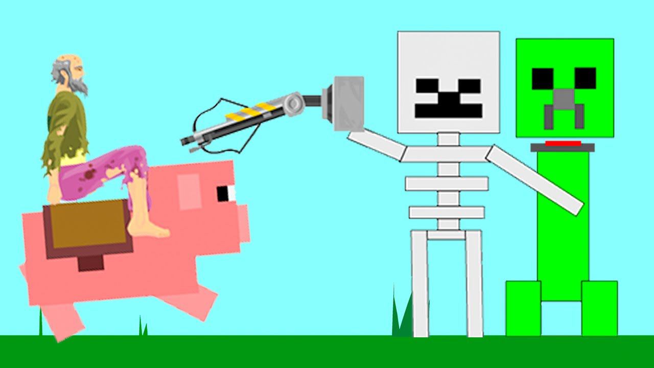 100% БЕЗУМИЕ! БИТВА НА СВИНЬЕ ПРОТИВ МОНСТРОВ МАЙНКРАФТ! УГАРНЫЙ УРОВЕНЬ ХЭППИ ВИЛС (Happy Wheels)