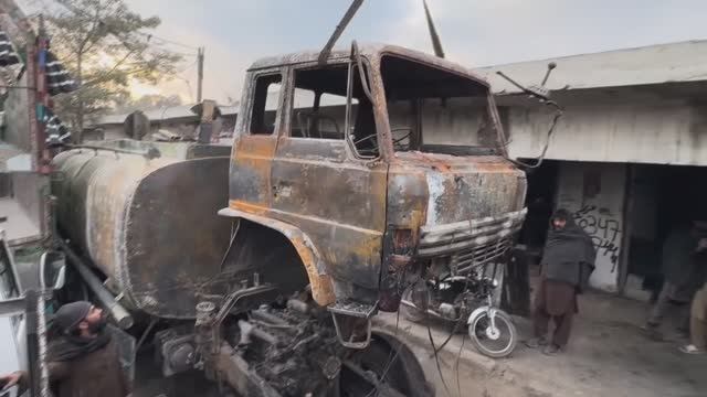 Процесс восстановления сгоревшего бензовоза.