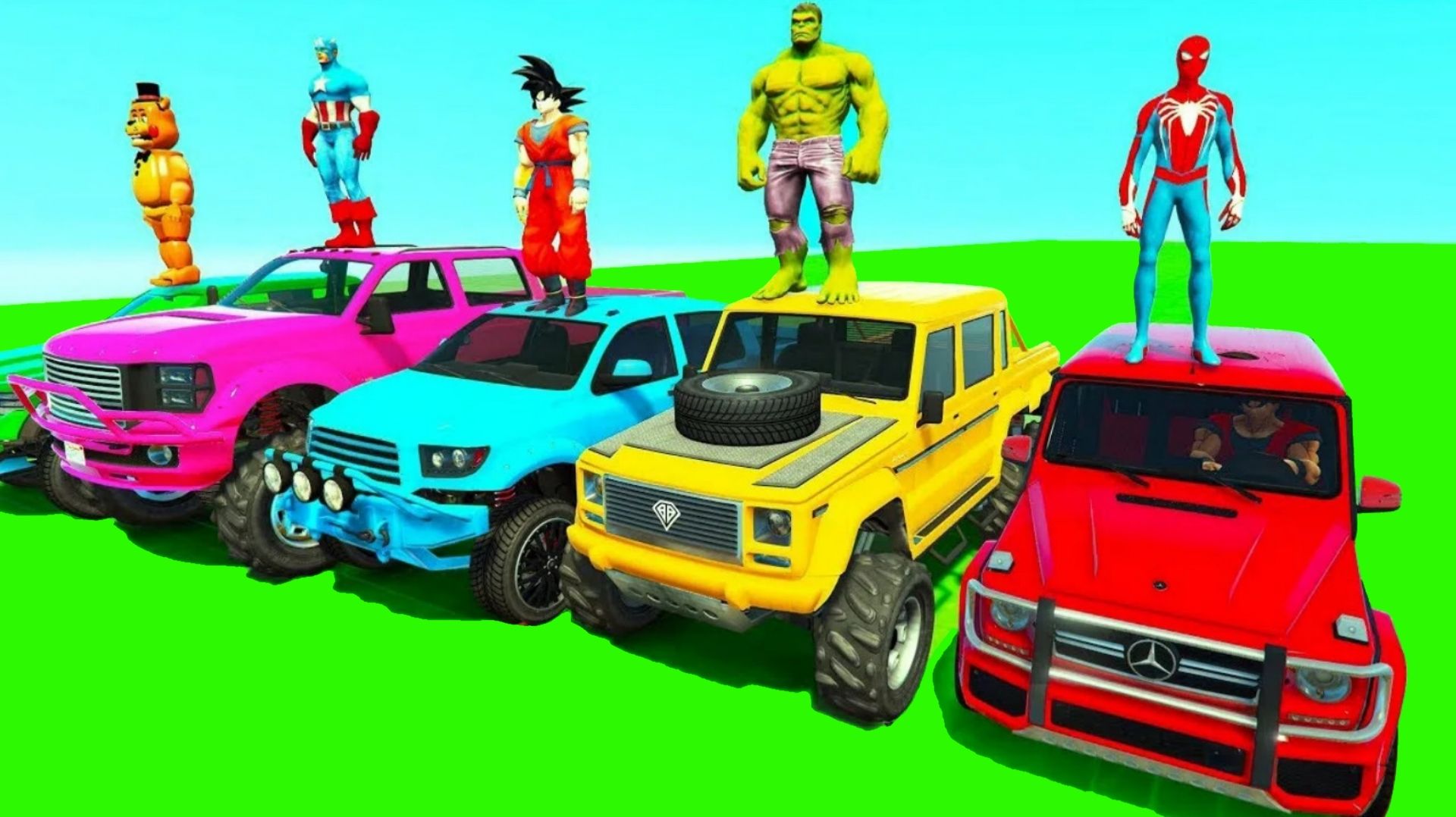 ЧЕЛОВЕК-ПАУК Супер гонки на машинах на рампе ХИЛЛ! СУПЕРГЕРОИ ХАЛК, Гоку, ДЖИП, гоночный внедорожник