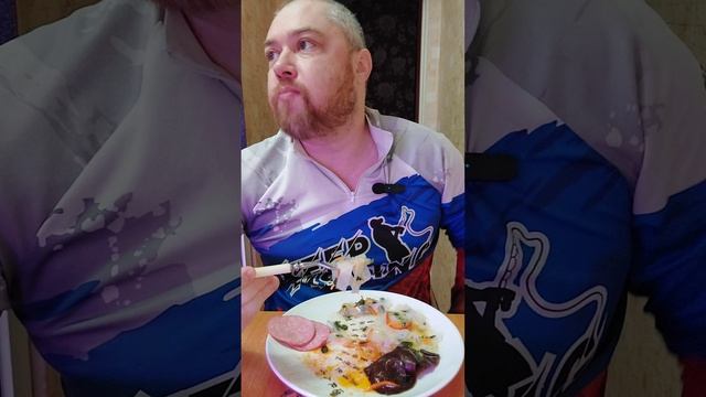 На завтрак - варёные яйца, фунчеза, колбаса, древесный гриб. Мукбанг, еда на камеру. #мукбанг #едана