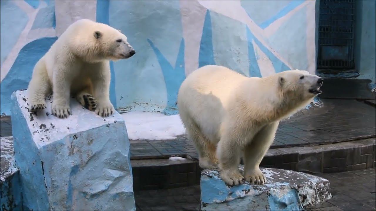 Герда родилась в Москве 20 ноября 2007 года. Её мама Симона, папа Врангель. В Новосибирск переехала 05.08.2008. В 2013 году у Герды и Кая родилась Шилка. В 2015 году она переехала в Японию. В 2015 году родился Ростик. 6 декабря 2018 года он переехал в Китай. В 2018 году родились Норди и Шайна. Данная пара молодых медведей находилась вне экспозиции зоопарка, поэтому посетители не могли их видеть. Передача молодых медведей в другой зоопарк не планируется, — ответили на запрос редакции в пресс-центре мэрии Новосибирска. Но Шайна 20 января 2024 года переехала в Ижевский зоопарк. Белые медведи одиночные животные. Как правило, миролюбивы по отношению друг к другу, но между самцами в брачный период случаются стычки. Взрослые самцы могут нападать на медвежат. Гон с марта по июнь. Продолжительность жизни — максимум 25—30 лет; в неволе рекорд долгожительства — 42 года. Вес очень крупных самцов в некоторых частях ареала 700 и даже 800 кг: есть данные о зверях весом до 1000 кг. Обычно вес меньше. Самки всегда не только меньше, но и значительно легче самцов. Так, самцы в восточной Гренландии в состоянии нормальной упитанности весят 400—450 кг, хорошо упитанные — до 500 кг, самки, даже очень сытые, здесь же редко весят больше 350—380 кг, т. е. их вес составляет около 75% веса самцов. Длина тела на 3-й день после рождения 28—32 см, средний вес — около 755 г (650—840 г). На 26-й день длина тела увеличивается незначительно — до 35—38 см, а вес возрастает до 1125—1275 г. В возрасте 60 дней самцы весят около 7 кг, самки — около 6 кг при длине тела у первых 58—60 см, у вторых 54—58 см. В возрасте 4 месяца медвежата достигают веса 22—23 кг, в 6-месячном возрасте при длине около 110 см — 40—43 кг, в 8-месячном — 58—62 кг. Длина тела в возрасте с 6 до 9 месяцев нарастает по 6—7 см в месяц. Во время зимнего сна рост почти прекращается. В зоопарке медведей кормят утром морской рыбой, хлеб с рыбьим жиром внутри, морковь, яблоки, морская капуста, яйцо дают сырое. Медвежат подкармливают молоком из соски. На ужин мясо (говядина, конина, куры или индейка). Летом и осенью арбузы, дыни, ранетки, кабачки, тыквы, огурцы. Когда показательное кормление летом бросают живую рыбу. Медвежата с медведицей находятся до 2-х лет. 16 декабря 2022 года Герда родила 2-х медвежат. И это две девочки! Имена дали 25 июня. Медвежат зовут Стрелка и Белка. Обзор вольеров белых медведей https://www.youtube.com/watch?v=mAt_b7JD0B4&list=PLGvf0V-rAHxkpGKJaWIZIUxRKgKiqV3xZ&index=17&t=0s