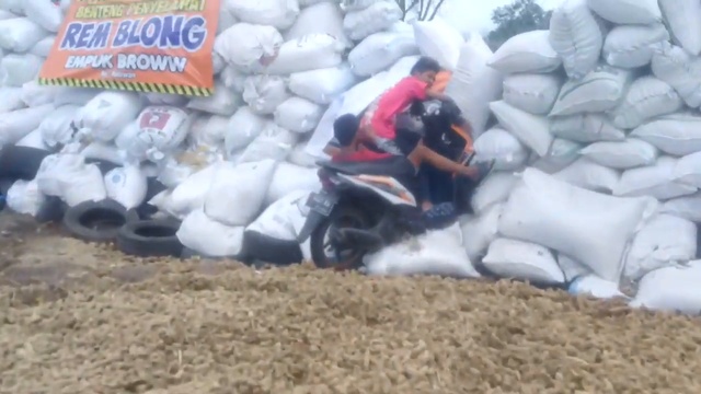 Индонезия. Мотоциклист внезапно врезался в защитный барьер, потому что он не смог затормозить на крутом повороте. #мотоциклист #врезался #фейл #влетел