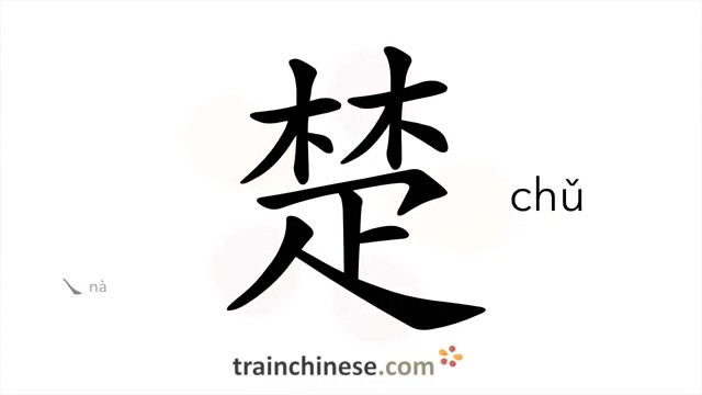 楚 (chǔ) clear, neat; distinct; to understand thoroughly; to be clear about*