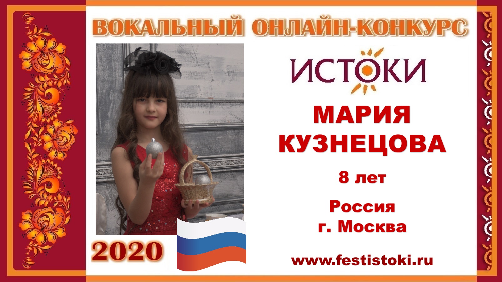 Участница Вокального онлайн-конкурса "Истоки"-2020. Песня "Баллада о солдате". Авторы: музыка В. Соловьев-Седой, слова М. Матусовский. Сайт: www.festistoki.ru / www.festistoki.com E-mail: festistoki@mail.ru