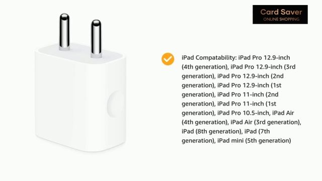 Apple 20W USB-C Power Adapter (for iPhone, iPad & AirPods) Click Here to buy Now: https://amzn.to/32Vme0d About this item The Apple 20W USB‑C Power Adapter offers fast, efficient charging at home, in the office, or on the go. iPhone Compatability: iPhone 12 Pro, iPhone 12 Pro Max, iPhone 12 mini, iPhone 12, iPhone 11 Pro, iPhone 11 Pro Max, iPhone 11, iPhone SE (2nd generation), iPhone XS, iPhone XS Max, iPhone XR, iPhone X, iPhone 8, iPhone 8 Plus iPad Compatability: iPad Pro 12.9-inch (4th generation), iPad Pro 12.9-inch (3rd generation), iPad Pro 12.9-inch (2nd generation), iPad Pro 12.9-inch (1st generation), iPad Pro 11-inch (2nd generation), iPad Pro 11-inch (1st generation), iPad Pro 10.5-inch, iPad Air (4th generation), iPad Air (3rd generation), iPad (8th generation), iPad (7th generation), iPad mini (5th generation) AirPods Compatability: AirPods Max, AirPods Pro, AirPods With Wireless Charging Case, AirPods With Charging Case Charging cable sold separately. Siwi Fast Type-C Charger for Samsung Galaxy A21s / A 21 s Charger Original Adapter Like Wall Charger | Mobile Charger Click Here to buy Now: https://amzn.to/3Gff5q6 Siwi Fast Type-C Charger for Nokia 5.1 Plus (Nokia X5) Charger Original Adapter Like Wall Charger | Mobile Charger Click Here to buy Now: https://amzn.to/3xTGTNE 3.1A Dual Port Car Charger for Samsung Galaxy S9 Plus Car Charger Click Here to buy Now: https://amzn.to/3xVmw2E Follow on Instagram_ https://www.Instagram.com/card.saver Facebook_ https://www.facebook.com/cardsaver7 Twitter_ https://twitter.com/cardsaver7 Telegram_ https://t.me/cardsaver7