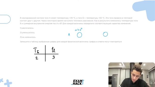 В изолированной системе тело А имеет температуру +40 °C, а тело Б — температуру +65 °C - №24171