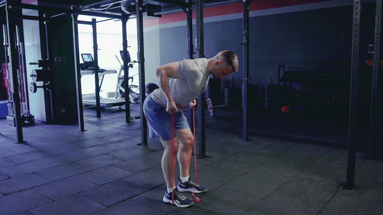 Изометрическая тяга резины в наклоне/ Isometric bent over band row