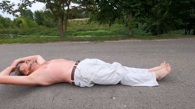 Дед - десантник лежит на проезжей части и его объезжают иномарки осторожно