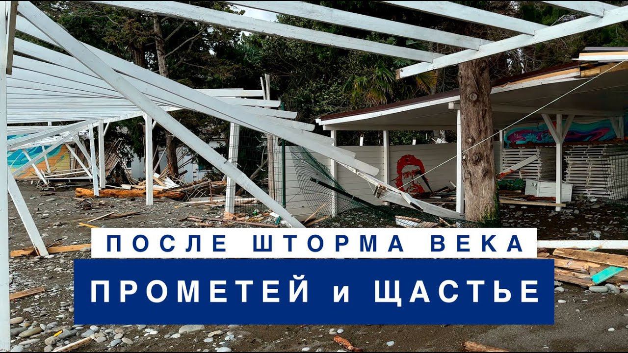 Разрушения на пляжах Прометей и Щастье после шторма века. Лазаревское - 28 ноября 2023.