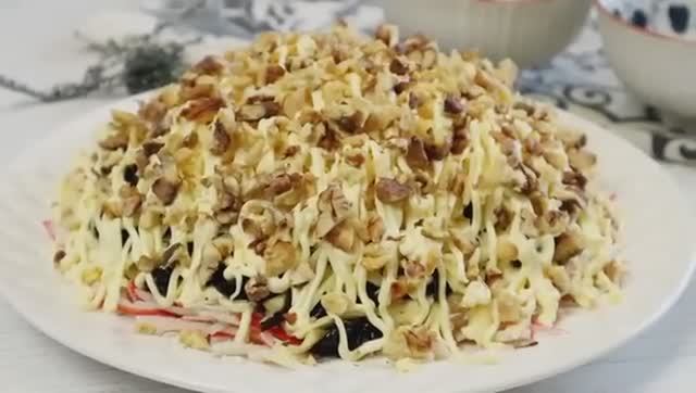 🙄_Подписывайтесь на мой_ Телеграм-канал ► https://t.me/vkucnotak #салат #черныйжемчуг #праздничныйсалат 🌸 Салат «Чёрный жемчуг» — нежный, праздничный, дамский. Этот салат — настоящий фаворит для женского праздника, особенно к 8 Марта. Нежный, воздушный, с мягкой сливочной текстурой и лёгкой сладкой ноткой чернослива. Всё просто, доступно, но вкус получается гармоничный и очень изысканный. 🛒 Ингредиенты: • Крабовые палочки или крабовое мясо — 200 г • Яйца — 3-4 шт. • Сыр твёрдый — 150 г • Чернослив — 120–150 г • Грецкие орехи — 70–80 г • Сливочное масло —30- 50 г • Майонез — по вкусу 👩🍳 Краткое приготовление: Крабовые палочки, яйца и сыр натереть на тёрке. Сливочное масло слегка подморозить и натереть. Чернослив нарезать мелкими кусочками. Выложить слоями: крабовые палочки → майонез → яйца → майонез → сливочное масло → чернослив → лёгкая сеточка → сыр → майонез → орехи. Дать салату пропитаться 2–3 часа в холодильнике. 💡 Если чернослив твёрдый: • Промыть его тёплой водой. • Залить горячей (не кипящей!) водой на 10–15 минут. • После этого обязательно обсушить бумажным полотенцем. Важно: не держите в воде слишком долго — он станет водянистым, и салат может «поплыть». ✨ Нюансы приготовления: • Орехи лучше слегка подсушить на сухой сковороде — аромат станет ярче. • Майонез наносите тонкой сеточкой, чтобы салат остался воздушным. • Не делайте слишком толстые слои — нежность этого салата в лёгкости. • Перед подачей можно украсить половинками чернослива или аккуратной ореховой крошкой. Если вам понравился рецепт — поддержите канал подпиской 🤍 Готовьте с удовольствием и радуйте своих близких! #салат #черныйжемчуг #праздничныйсалат #салатк8марта #дамскийсалат #вкусноипросто #салатнаслой #женскийпраздник #простыерецепты Девочки, если вы ищете нежный, воздушный и действительно вкусный салат к празднику — вы его нашли. “Чёрный жемчуг” — это гармония простых ингредиентов и потрясающий результат. Идеально к 8 Марта, девичнику или просто для женской компании. Попробуйте приготовить — и он станет вашим фаворитом.
