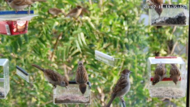 Воробьи в кормушке -