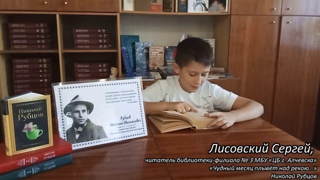Николай Рубцов «Чудный месяц плывёт над рекою». Читает Лисовский Сергей Александрович, читатель библиотеки-филиала № 3 МБУ «ЦБ г. Алчевска», обучающийся 4 класса ГБОУ ЛНР «АОШ № 13», Луганская Народная Республика.
