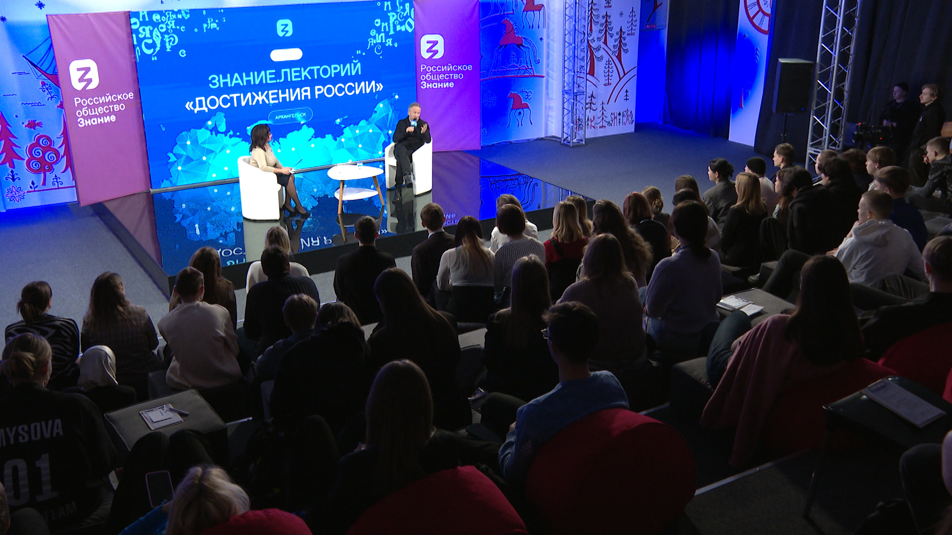 Особенная площадка – аудиторя с неповторимым мезенским колоритом появилась в Северном (Арктическом) федеральном университете. Это новая лекционная студия Архангельского регионального отделения общества «Знание». Именно здесь будут проводиться лекции и обсуждаться самые важные вопросы. Первым спикером медиа-студии стал известный телеведущий, актер Оскар Кучера. В беседе со студентами он затронул темы образования, политики, семьи и творчества. Во время встречи с Оскаром Кучерой у аудитории была возможность задать свои вопросы. Они касались, как взглядов на современные образовательные базовые компетенции, так и на возможности творческой реализации после вуза. Телеведущий поделился и своими впечатлениями об открывшейся на ВДНХ международной выставке-форуме "Россия". Знаковым событием, прошедшим в новой студии стало отчетное собрание участников общества «Знание». Председатель регионального отделения, ректор САФУ Елена Кудряшова, подводя итоги работы за 2023 год, отметила, что эксперты общества провели 700 лекций, в которых приняли участие более 15 тысяч жителей региона. На общем собрании были озвучены планы на реализацию проектов 2024 года, в которые входит проведение Съезда и создание Наблюдательного Совета регионального общества «Знание», для развития сотрудничества регионального отделения с организациями –партнерами.
