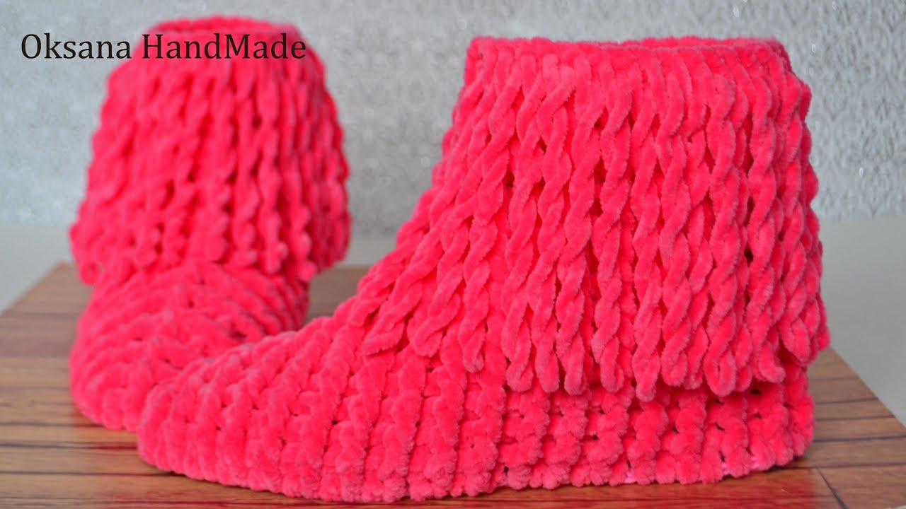 Домашние сапожки из плюшевой пряжи. Мастер класс