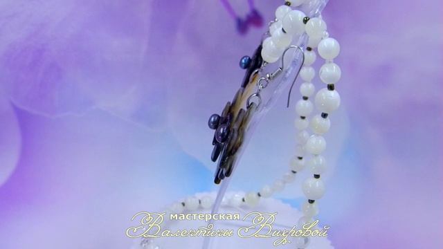 Цветы, комплект серьги и ожерелье, перламутр