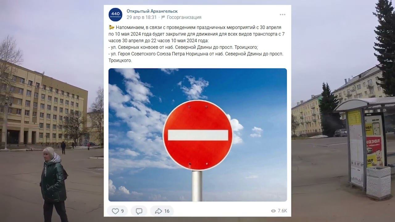 Администрация Архангельска не смогла перекрыть две улицы для проведения мероприятий, так как они ничего не могут сделать совсем. Автомобили ездят свободно, знаки или отодвинуты или скинуты на газон. Вот их сообщение: с 30 апреля по 10 мая будет закрытие для движения для всех видов транспорта с 7 часов 30 апреля до 22 часов 10 мая 2024 года: - ул. Северных конвоев от наб. Северной Двины до просп. Троицкого; - ул. Героя Советского Союза Петра Норицына от наб. Северной Двины до просп. Троицкого.