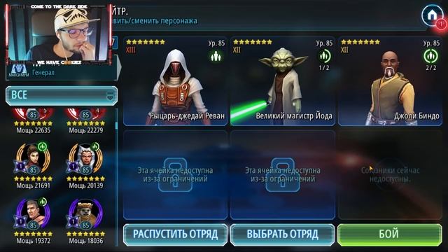 Продолжаем играть в Star Wars галактика героев! ✔️Плейлист с игрой: http://bit.ly/FrissonSWGOH Приятного просмотра ✔️Стать спонсором: http://bit.ly/BestOfFrisson ✔️Помощь в развитии канала: https://www.donationalerts.com/r/frisson_xl ✔️Я в соц.сетях: ✔️Telegram - http://bit.ly/FrissonTelegram ✔️Discord - http://bit.ly/FrissonDiscord ✔️Паблик VK - http://bit.ly/FrissonPubVK ✔️Instagram - http://bit.ly/FrissonINST ✔️Все права на музыку принадлежат Epidemic Sound: https://www.epidemicsound.com/ ✔️По всем вопросам дружбы и коммерции: frisson.youtb@gmail.com Игра позволяет собирать персонажей, показанных в трилогии приквелов, сериале «Звёздные войны: Войны клонов», оригинальной трилогии, Пробуждении Силы и компьютерной игре Star Wars: Battlefront. Все персонажи открываются за так называемые осколки, они же нужны для прокачки героев. Кроме того, оборудование, которое можно надеть на героев увеличивает их показатели здоровья, атаки и брони, а особые способности персонажей можно открыть за материал для улучшения способностей Mk. По классам герои разделяются на лекарей, поддержку, атакующих и танков. Помимо Кампаний за Светлую и Темную сторону Силы соответственно, присутствуют режимы: Испытания (где ежедневно игроки должны выполнить определённые задачи), Арена (на которой сходятся в схватках игроки за звание лучших), Кантина (где можно получить материалы для улучшения способностей Mk и особые осколки персонажей), Галактическая Война (где игрок проходит небольшую кампанию со всеми своими персонажами, заменяя выбывших бойцов новыми и где можно получить особых персонажей), и События (где можно заработать бонусные кредиты, опыт и осколки легендарного магистра Йоды, Гранд- Адмирала Трауна, Императора Палпатина, R2-D2, а так же новых персонажей) #starwars #galaxyofheroes #frissongames