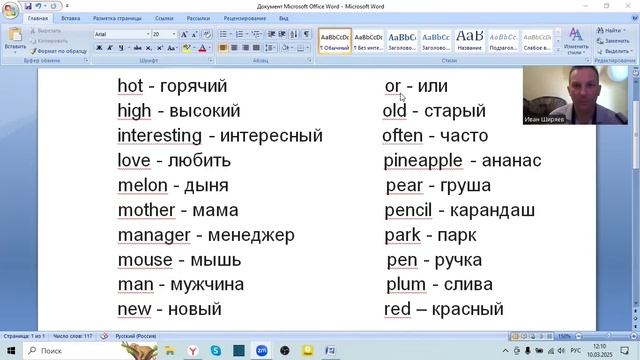 Английский язык Слова к уроку видео 3