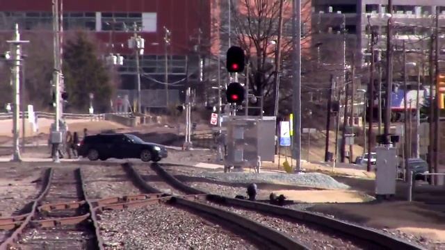 Прибытие пассажирского поезда на платформу и вид на прибывающий грузовой состав