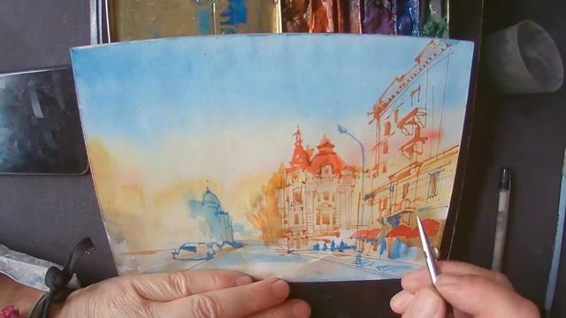 Городская зарисовка. Акварельная графика. 6 минут рисования под музыку Моцарта :-) #Urbansketching