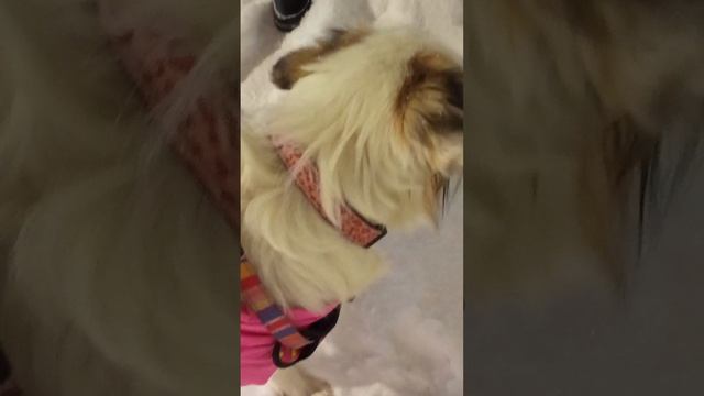 20260108 Мы опять с Никуней на прогулке. Снегу по колено, - 9, на улице никого. Долго не гуляем.