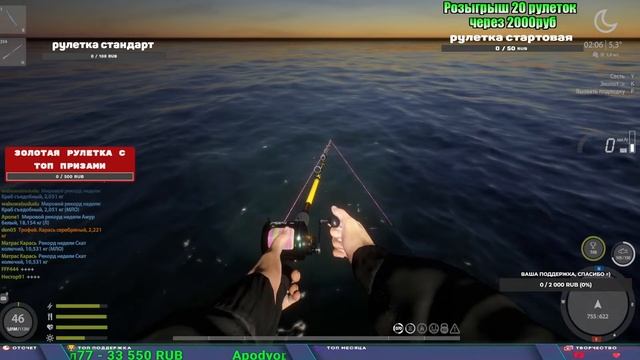 Поддержка донатом https://www.donationalerts.com/r/kalyamba11 Альтернативный донат https://new.donatepay.ru/@1032463 Если стрим лагает,смотри стрим на трово https://trovo.live/s/Kalyamba_na_Ribalke ТОП 1 ДОНАТЕР МЕСЯЦА поддерживающий трансляции получит подарок в виде катушки TAIGA c40 2s Мой ВК - https://vk.com/kalyantv НИК в игре kalyan11 НАШ ДИСКОРД СЕРВЕР https://discord.gg/mSbnTJK8TB Заказ водоема на 1 час - 500р ( весь стрим 2500р ) Модерка на канале 1100р ( каждая следующая на 100р больше) Озвучка доната на 40р,50р,100р,200р,300р,500р,1000р ✅Призы в рулетке "ЗОЛОТАЯ" ✔ ЗОЛОТО ✔ ПРЕМ ✔ КАТУШКИ РАПТОР 40, АЗИМУТ 10000, СИЛЬВЕР 80, ТАЙГА с 30 ЮБИЛЕЙНАЯ, ✔ ПАЛКИ ПИЛКЕРНАЯ, ДОНКА МОРСКИЕ, ✔ РОД ПОД, СТУЛЬЯ ✅Призы в рулетке СТАНДАРТ : ✔ катушка "РАПТОР 40" ✔ катушка "АЗИМУТ 10000" ✔ катушка "ТАЙГА С30, С40, С30 (юбилейная)" ✔ катушки 60 для медного ( ЭВИИ, НАТОРЫ, ГОЛДА, и тд) ✔ ПИЛКЕРНОЕ УДИЛИЩЕ КОРОЛЕВА ОКЕАНА ✔ Морское Донное удилище ✔ прем ( 3, 7, 30 дней) ✔ золото ( 1, 3, 5, 10, 20 ,50) ✔ билет на море ( 1, 3, 5 дней) ✔ голд наживка и др. ✅Призы в рулетке "СТАРТОВАЯ" ✔ катушка "silver80" ✔ катушка "БЕЛЫЙ КАЛИБР" ✔ катушка "Черный калибр" ✔ катушка "Протон" ✔ катушка "Нарга 6000" ✔ Набор Фидерист и спинингист ✔ Карповик Фортуна ✔ фидерные удилища ✔ прем, золото, алкашка, наживки и тд P.s Рулетка это не казино, а награда за поддержку стримера. Вечный ТОП ПОДДЕРЖКИ (11.05.2024) 1. Dimon_pokemonchik 119 784 2. Interceptor 75 508 3. Skreb79 71 261 4. une personne 68 619 5. Нарвал77 31 550