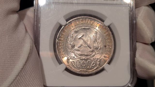 рубль 1921 АГ полуточка в слабе NGC MS64