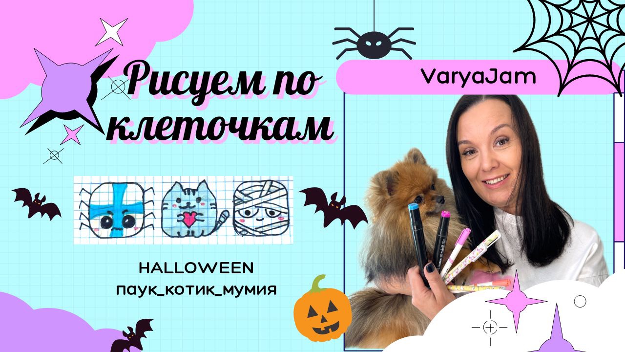 Всем привет! Сегодня мы будем рисовать по клеточкам паука, котика и мумия. Всем хорошего просмотра.