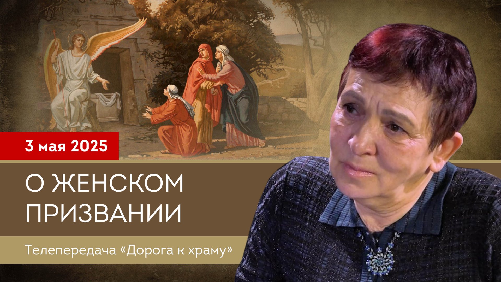 В новом выпуске программы "Дорога к храму" в преддверии праздника жен-мироносиц с гостем студии - председателем фонда развития сотрудничества в области образования, просвещения науки и культуры "Соратники" Луизой Гагариной, поговорим об истинном призвании женщины, о ее роли в современном мире.