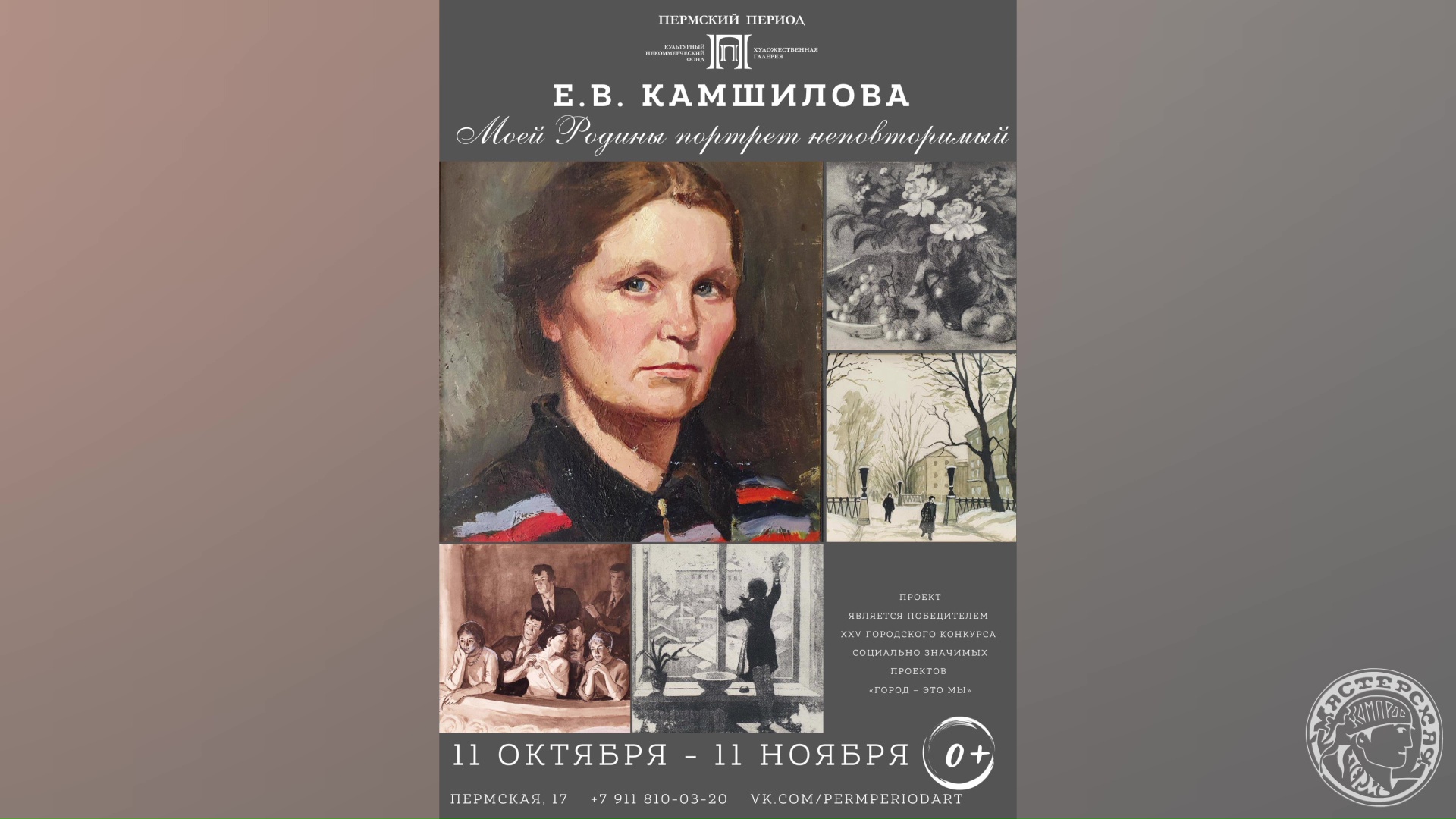 #моейродиныпортретнеповторимый #«ЕкатеринаКамшилова #выставка #художник #Городэтомы #Пермь #слайдшоуназаказ #художественнаягалереяпермскийпериод #Пермь #культурноенаследие С 10 октября до 11 ноября 2023 года художественная галерея «Пермский период», в партнерстве с Пермской государственной ордена «Знак Почёта» краевой библиотекой им. А. М. Горького и Архивом города Перми провела выставку памяти Екатерины Камшиловой «Е.В. Камшилова. Моей Родины портрет неповторимый». На выставке были представлены живописные и графические работы Екатерины Камшиловой. Екатерина Викторовна Камшилова (1904-1986) – человек удивительной судьбы. Родилась в городе Ирбит Пермской губернии. Окончила Пермский художественный техникум и графический факультет Ленинградского высшего художественно-технического института. Занималась станковой и тиражной графикой. В военные годы вернулась в Пермь (тогда – Молотов), сотрудничала с Молотовскими агитмастерскими; в технике трафарета исполняла необходимые для фронта и тыла плакаты Агит-Окна. С 1949 года работала техническим и художественным редактором в Молотовском (Пермском) книжном издательстве. Иллюстрировала книги, в том числе Е.Ф. Трутневой, Л.И. Давыдычева и А.А. Матросова, на которых выросло не одно поколение наших земляков. Екатерине Викторовне Камшиловой в 2024 году исполнилось бы 120 лет. Ее называли «бабушкой пермских художников». Жители города в большей степени знакомы с ее творчеством по иллюстрациям в детских книгах. Она оказала большое влияние на развитие печатной графики в Пермском крае. На выставке будет представлено множество живописных и графических работ художницы в разных жанрах – пейзаж, портрет, натюрморт, бытовые сцены. Сюжеты ее работ – городские пейзажи, жанровые сценки, портреты – это живое, непосредственное, искреннее проявление творческого человека любви к Родине, к каждому ее воплощению – в ее людях, природе, городских улочках. Выставку сопровождает экспозиция книг с иллюстрациями Камшиловой, которые находятся в свободном доступе для ознакомления. Проект является победителем XXV пермского городского конкурса социально значимых проектов «Город – это мы».