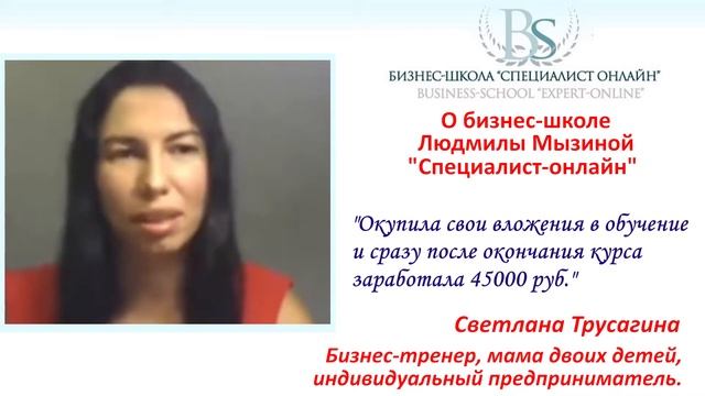 Мнение о бизнес-школе Л.Мызиной "СПЕЦИАЛИСТ ОНЛАЙН" выпускницы Светланы Трусагиной