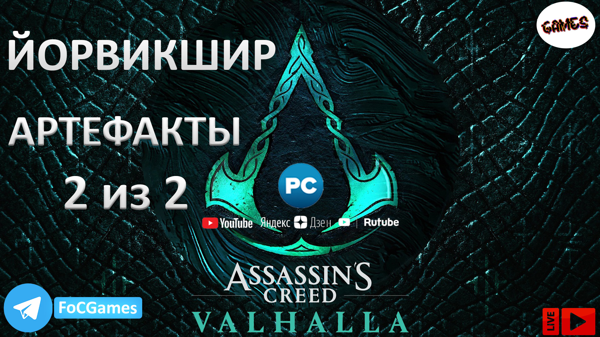 #AssassinsCreedValhalla #FOC #ЙорвикширАртефакты ✈️ Мой Телеграм - https://t.me/+Woir2s54kgFkZmFi Доступ к раннему контенту: Boosty - https://boosty.to/focgames Поддержать автора: Юмани - https://yoomoney.ru/to/410013992405237 Всем привет! Ты на канале FOC! За рулем ДЭН Играю в Assassin's Creed Valhalla Плейлист с гайдами по Асасин Крид Вальгала https://rutube.ru/plst/721500 Содержание: Йорвикшир - Артефакты. 00:08 Проклятый символ, 02:09 Набросок татуировки (Знак Ауки “лицо”), 03:47 Набросок татуировки (Ветер Вестри “руки”) - Йорвикшир / Донкастер, 05:20 Римский артефакт - Йорвикшир / Донкастер. По вопросам рекламы: 📣 Почта - zhuravlev.den6961@mail.ru 📣 Дискорд - foc_ 📣 ВК - https://vk.com/id118590710 Другие площадки: ▶️ Rutube - https://rutube.ru/channel/25360465/ ▶️ Яндекс.Дзен - https://dzen.ru/foc ▶️ VK Видео - https://vk.com/video/@focgames ▶️ Youtube - https://www.youtube.com/FoCGamesND ▶️ Платформа - https://plvideo.ru/channel/YG7IzcfYX5kr 🔊 Дискорд - https://discord.gg/gCnr5nwzGw Контакты для связи: 📋 Телеграм - https://t.me/FOCgames 📋 Дискорд - https://discord.gg/gCnr5nwzGw Стримы: 🟣 Trovo - https://trovo.live/s/FOC_ 🟣 Твич - https://www.twitch.tv/FOC_FOC 🟣 VKplay - https://vkplay.live/foc Игровое: 💌 Steam - FOC 💌 EpicGames - FOCgames_ 💌 ГудГейм - https://goodgame.ru/channel/demodance/ Assassin’s Creed Valhalla - Действие игры начинается в 873 году во времена завоеваний викингов. Игроку предстоит взять на себя роль викинга по имени Эйвор, ведущего своих сородичей от берегов холодной Норвегии до плодородных земель Англии в поисках нового дома. Клану Эйвор противостоят лидеры четырёх англосаксонских королевств: Уэссекса, Нортумбрии, Восточной Англии и Мерсии во главе с Альфредом Великим. Также Эйвору предстоит встретиться с Незримыми и помочь им в борьбе против Ордена Древних. Как и в предыдущей части серии в XXI веке продолжается история Лейлы Хассан. Помимо Англии и Норвегии действие игры также происходит на территории Северной Америки, под названием Винланд и в фантастических мирах: Асгарде, Йотунхейме и Вальхалле. #AssassinsCreedValhalla #FOC #Йорвикшир