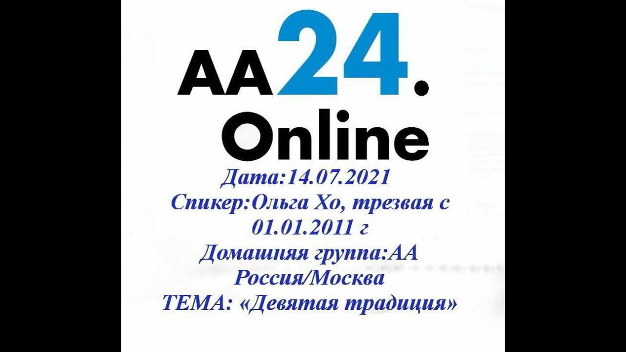 14.07.2021 Ольга Хо, трезвая с 01.01.2011 г Группа: АА Россия/Москва Тема: "Девятая традиция"
