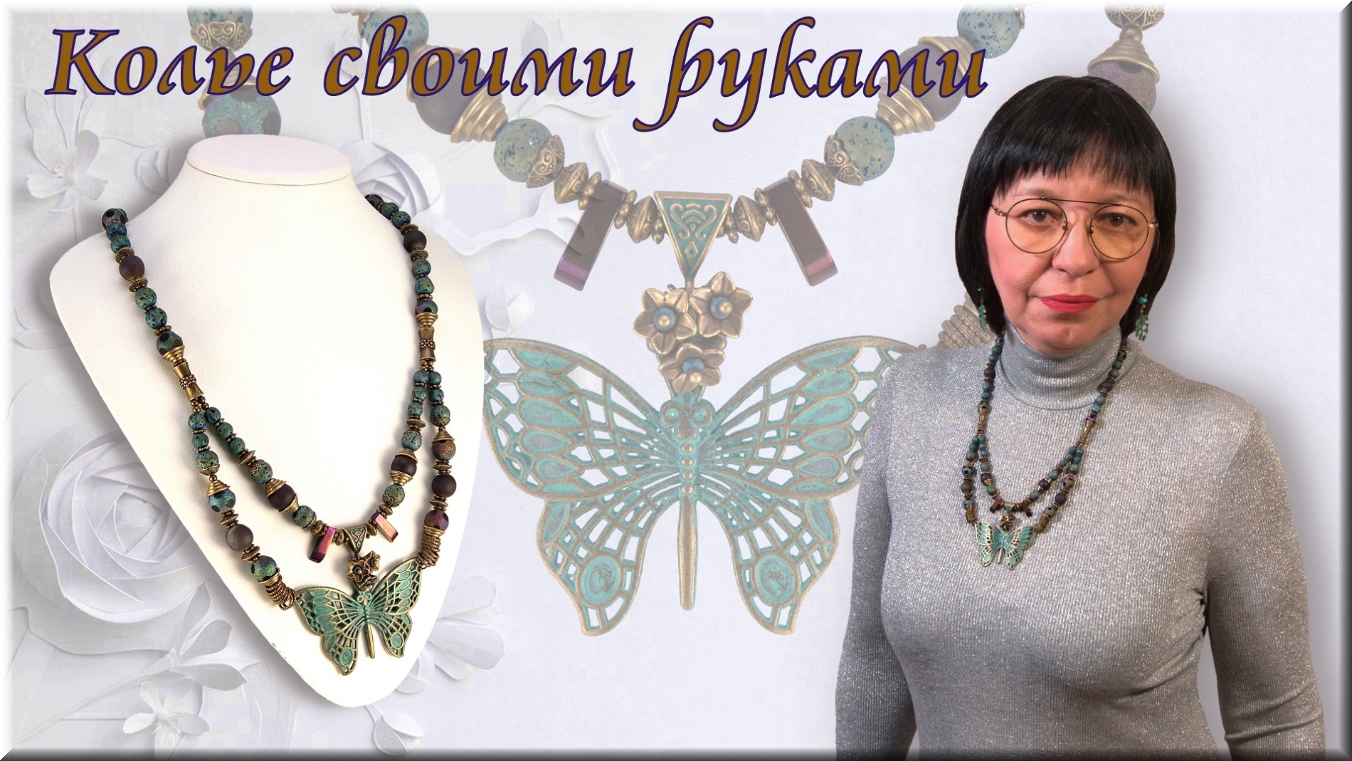 Колье своими руками мастер класс, Бусины из лавы, Кулон Бабочка, Переделка украшений.
