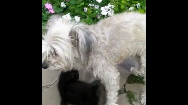 Собачка взяла шефство над котятами..)