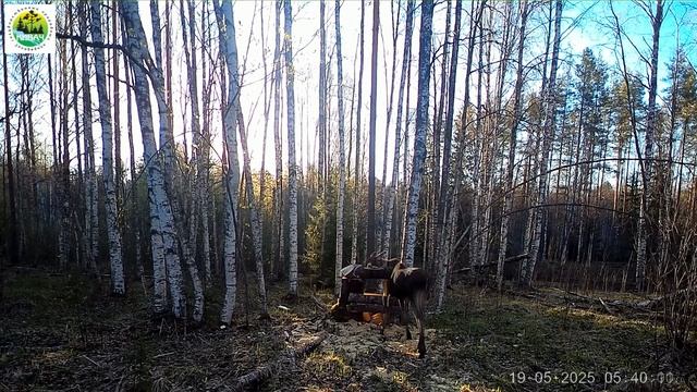 Молодой лось попал в объектив фотоловушки в заповеднике "Кивач". После знакомства с фотоловушкой подойти к солонцу и попробовать лизать соль молодой лось рискнул только утром через день. Видео снято 19.05.2025. Государственный природный заповедник «Кивач», Республика Карелия. Установка фотоловушки: Максим Сыроежин, государственный инспектор заповедника "Кивач".