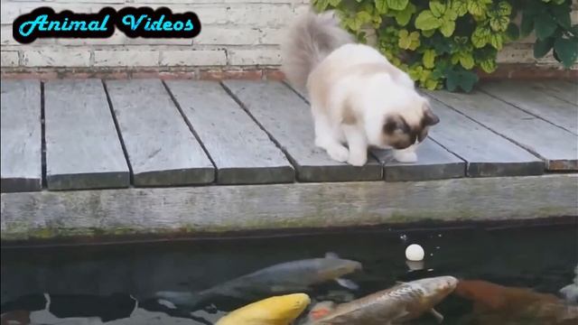 Рыбки забрали шарик у кота. Кот и рыбки. Прикол смотреть