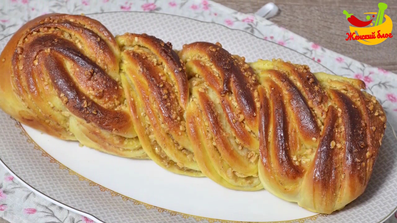 Рецепт Сдобная плетенка с орехами и корицей