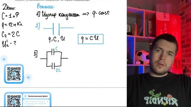 К изолированному заряженному конденсатору с электроёмкостью С 1 Нф и зарядом q=12 нКл - №20789
