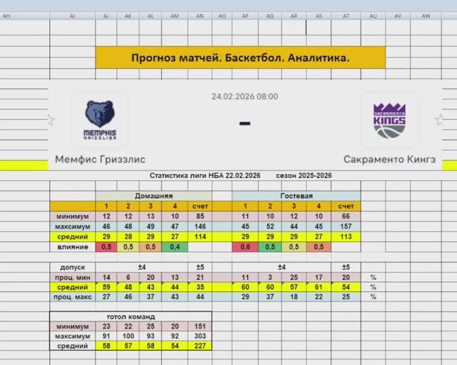 Прогноз матча Мемфис Гриззлис Сокроменто Кинкз. 24.02.2025. Баскетбол